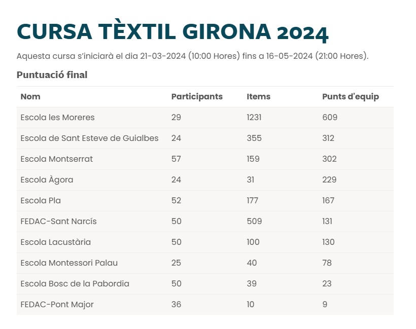 Escoles participants |